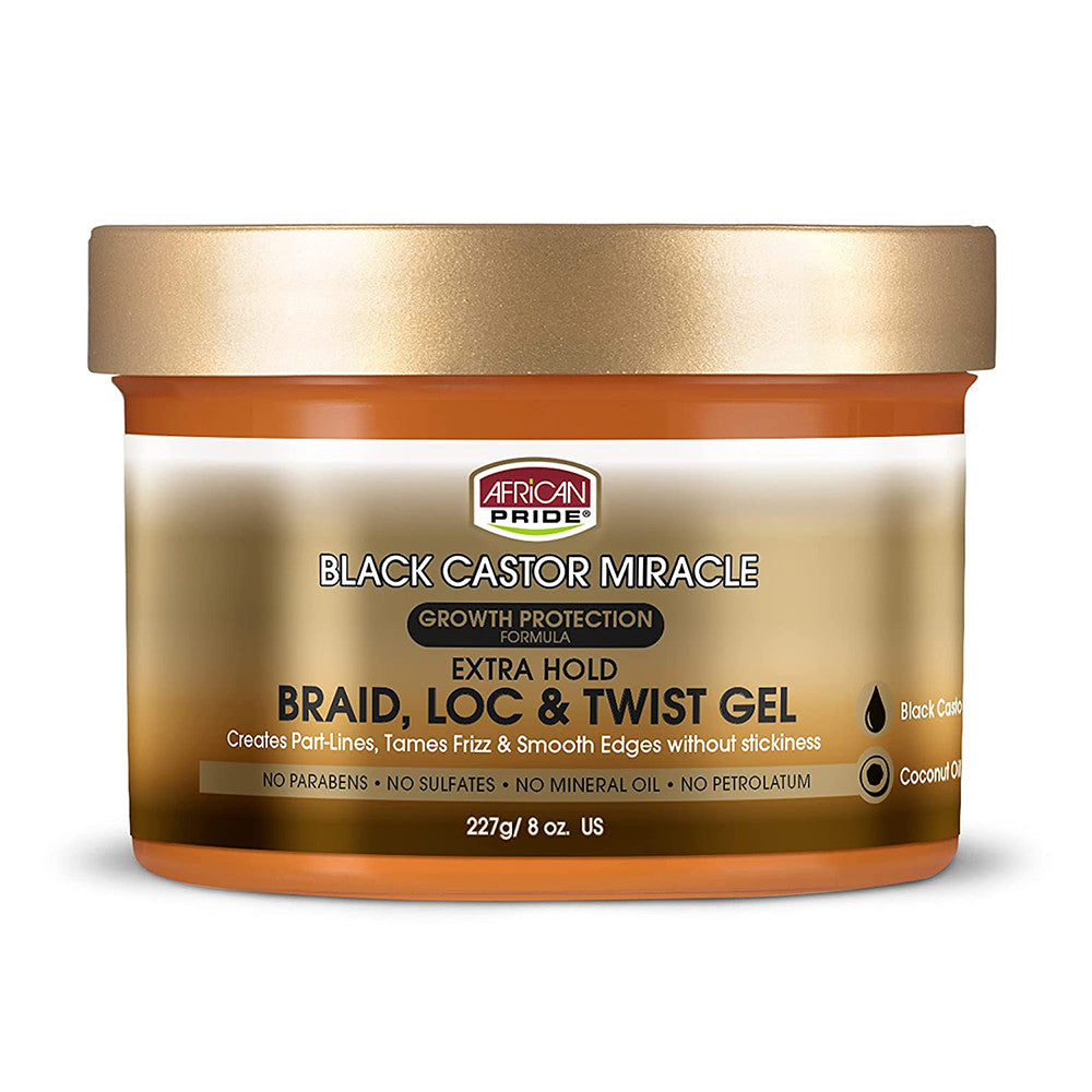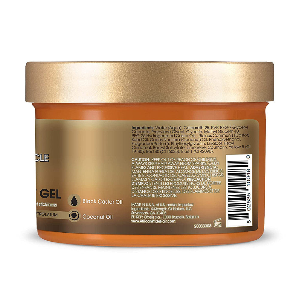 African Pride Black Castor Miracle Frizz Control Shine Enhancing Hair Gel, 8 Oz