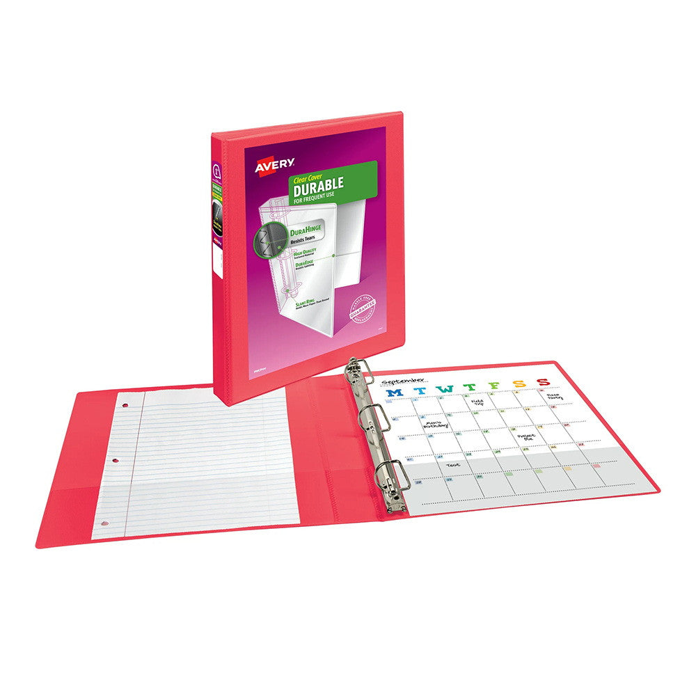 Avery Clear Cover Durable View Binder, 1 Inch Slant Rings, 220 Sheet Capacity, Assorted Colors, 1 Ea