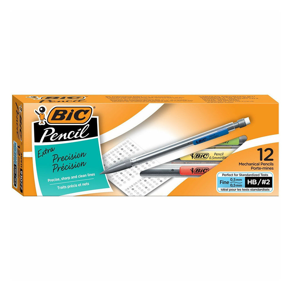 Bic Mechanical Pencils, Xtra Precision, 0.5 mm, Clear Barrel, 12 Ea
