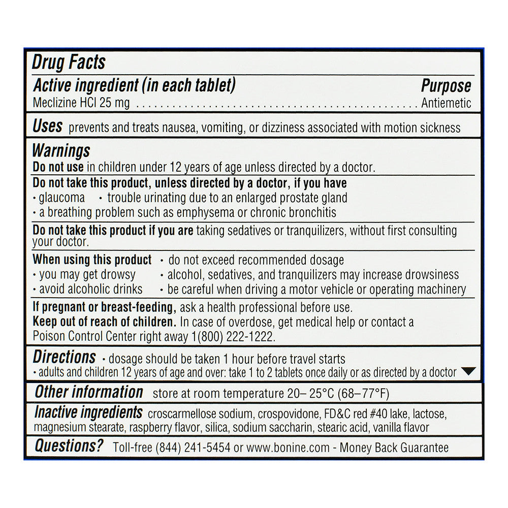 Bonine For Motion Sickness Chewable Tablets, Raspberry Flavored - 8 ea