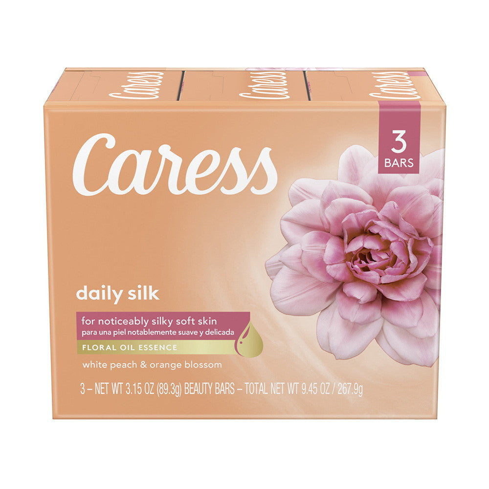 Caress Beauty Bar Soap Daily Silk 3 Bars, Extract And Floral Oil Essence, 3.15 Oz