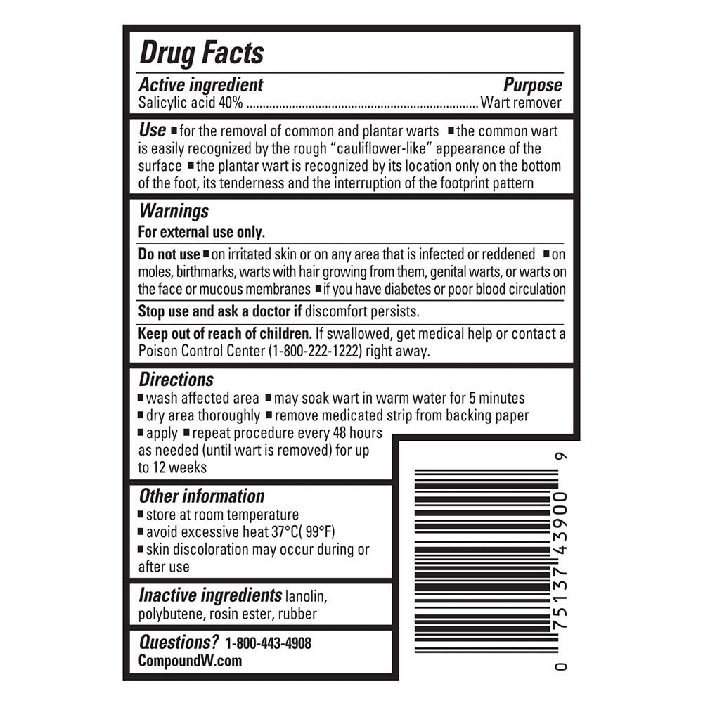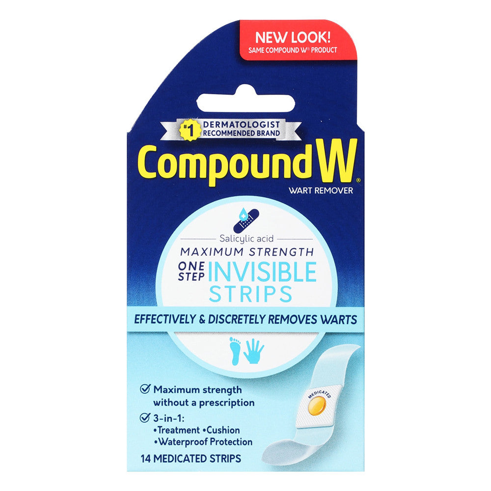 Compound W Maximum Strength One Step Invisible Wart Remover Strips, 14 Ea