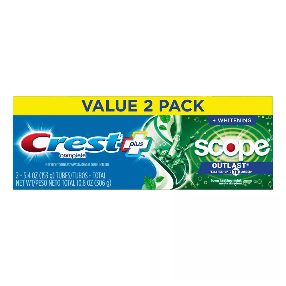 Crest Complete Plus Scope Outlast Whitening Toothpaste Pack Of 2, Mint, 5.4 Oz