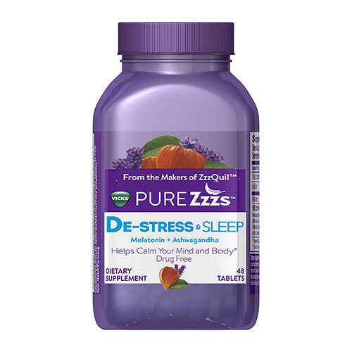 De Stress Sleep Melatonin Sleep Aid tablets by Vicks PURE Zzzs, 48 Ea