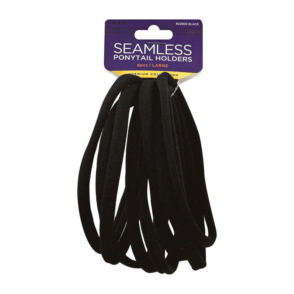 Donna Seamless Ponytail Holders, 22806 Large Black, 8 Ea