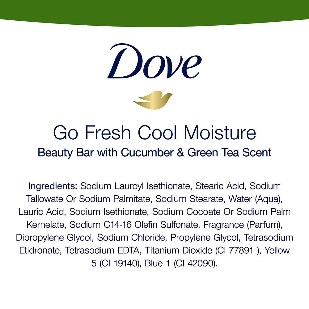 Dove Beauty Bar Women's Bath Soap Cool Moisturizing Gentle Cucumber and Green Tea, 4 Ea, 3.75 Oz
