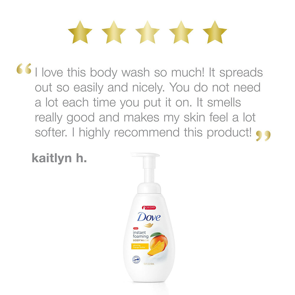 Dove Instant Foaming Glowing Mango Butter Body Wash Soap, 13.5 Oz