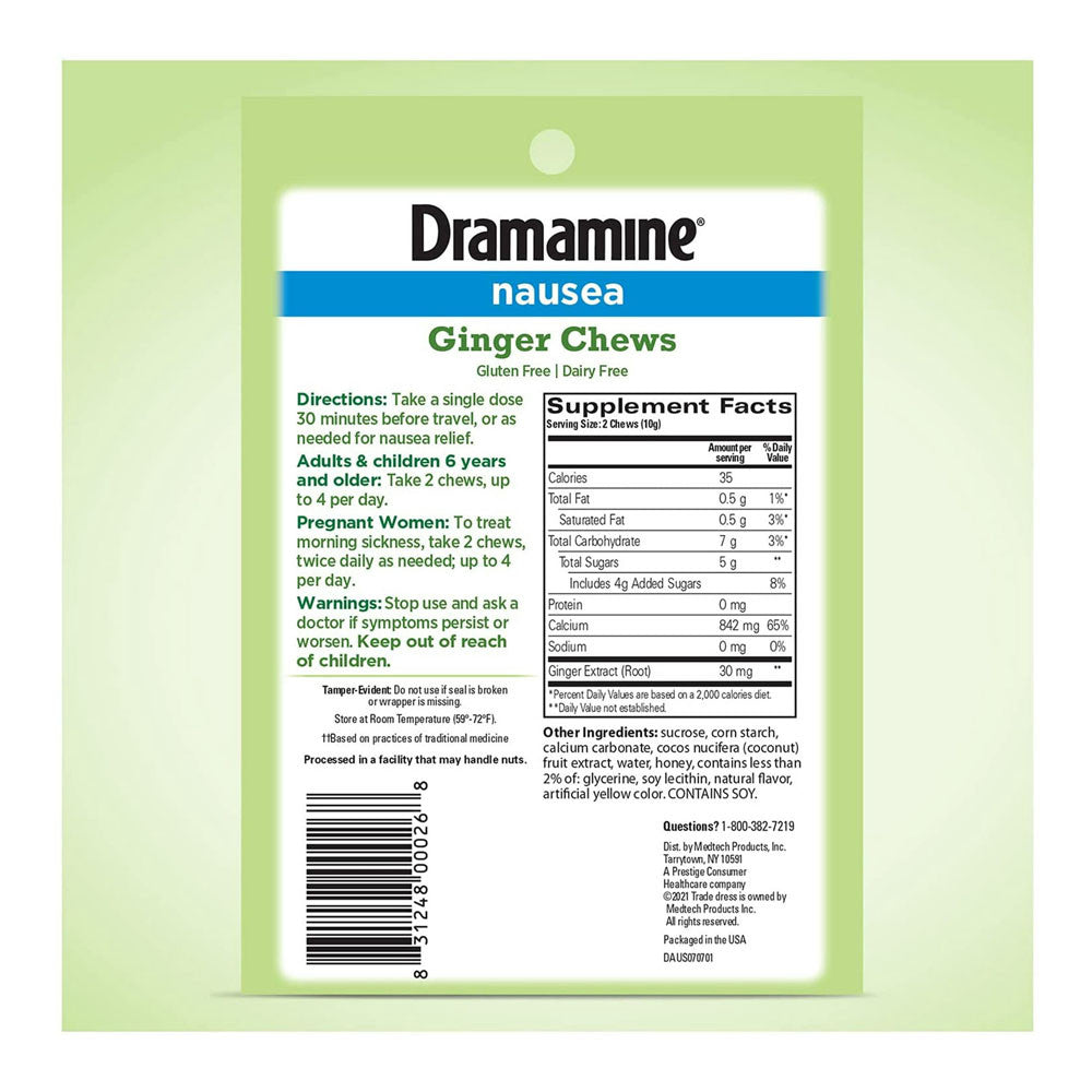 Dramamine Nausea Morning Sickness And Motion Sickness Relieves, Lemon And Honey Ginger Flavor, 20 Ea