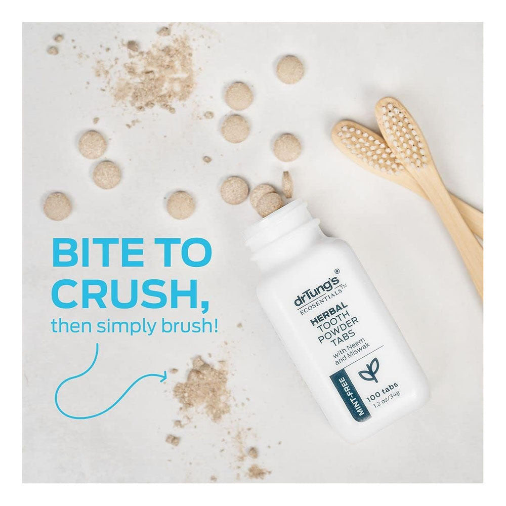 DrTungs Herbal Tooth Powder Tablets with Neam and Miswak, Mint-Free, 100 Ea
