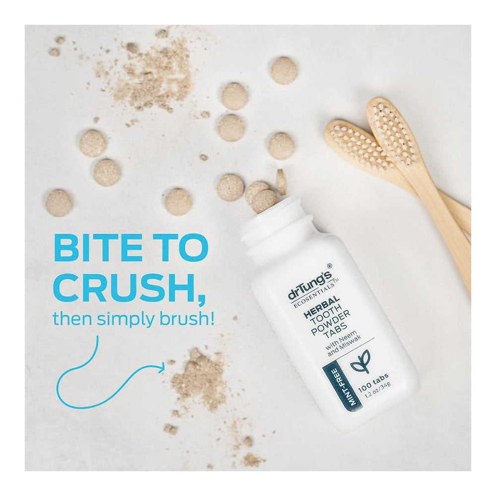 DrTungs Herbal Tooth Powder Tablets with Neam and Miswak, Spearmint, 100 Ea