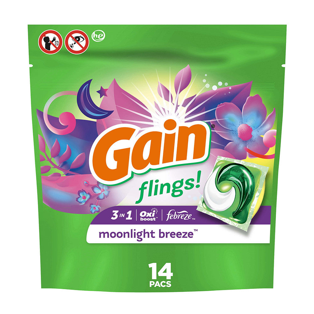 Gain Flings Moonlight Breeze Laundry Detergent Pacs, 14 Ea