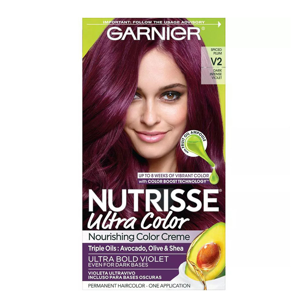 Garnier Nutrisse Ultra Color Nourishing Permanent Hair Color Cream, V2 Dark Intense Violet, 1 Ea