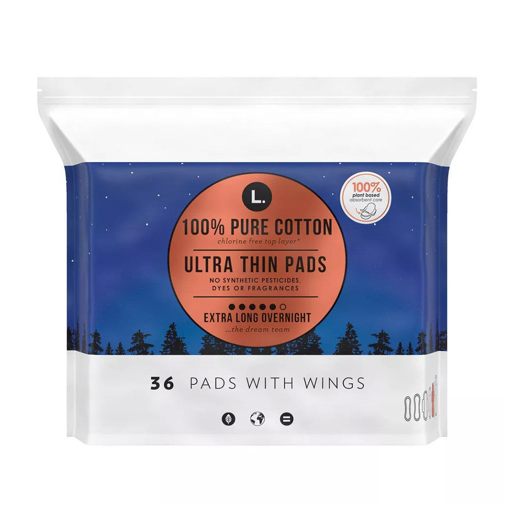 L Organic Cotton Topsheet Ultra Thin Over Night Absorbency Pads, Unscented, 36 Ea