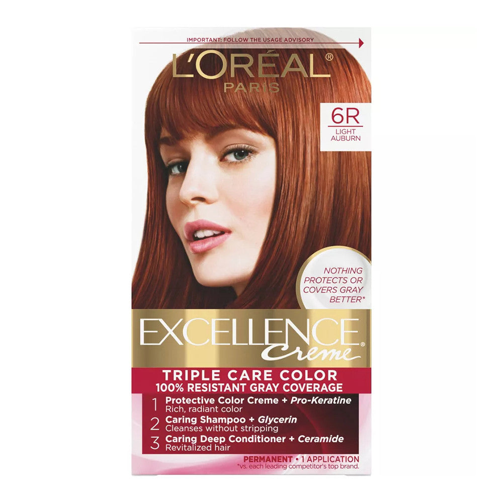 Loreal Excellence Triple Protection Hair Color Creme, 6R Light Auburn - 1 Ea
