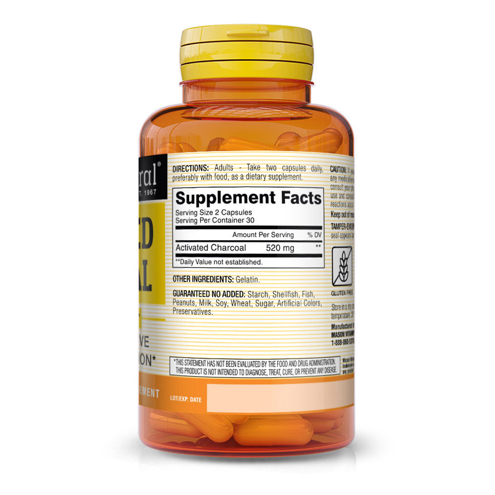 Mason Natural Activated Vegetable Charcoal Capsules, Digestive Aid - 60 Ea