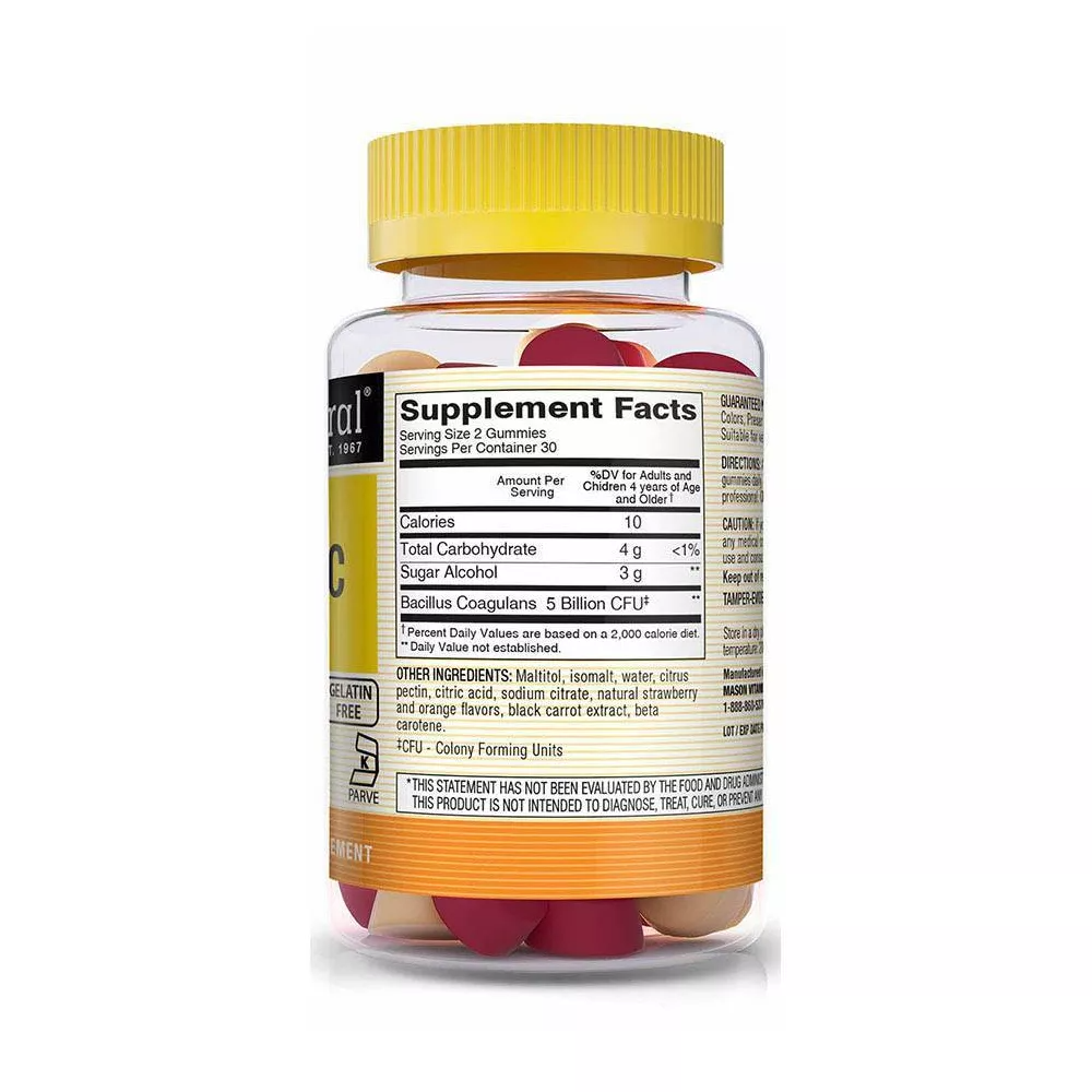 Mason Natural Sugar Free Probiotic Gummies Dietary Supplement, 60 Ea
