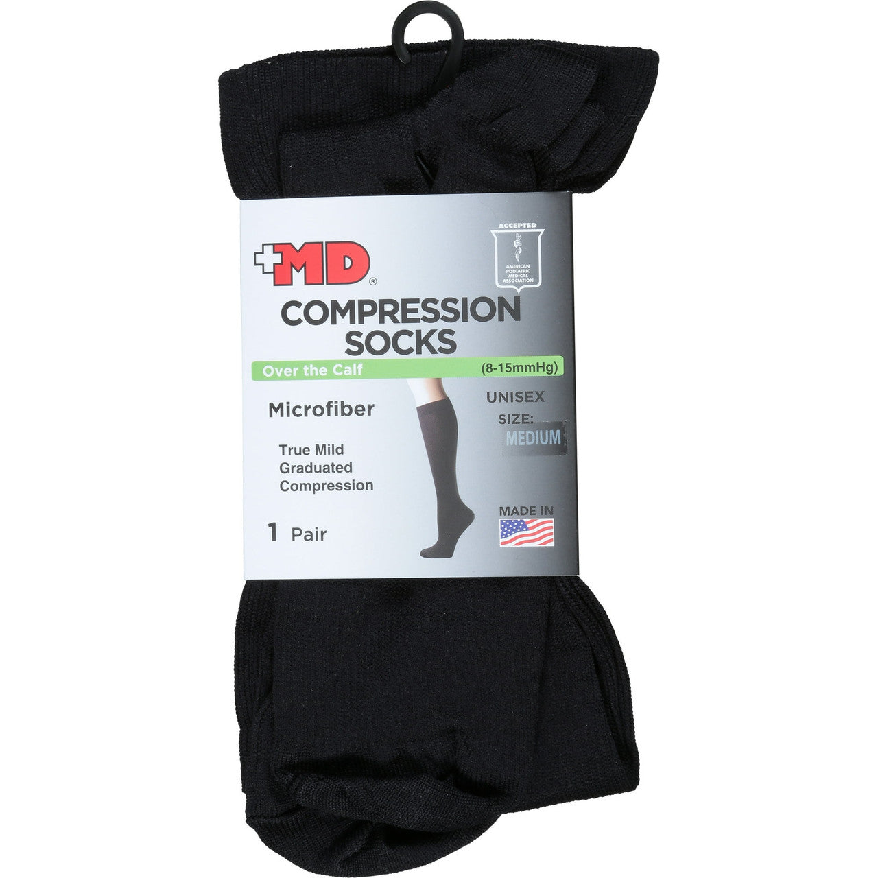 Md Microfiber Over The Calf Compression Socks Black, Medium, 1 Ea