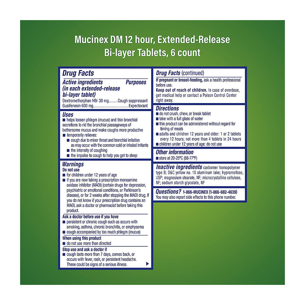Mucinex DM 12 Hour Expectorant and Cough Suppressant Tablets, 6 Ea