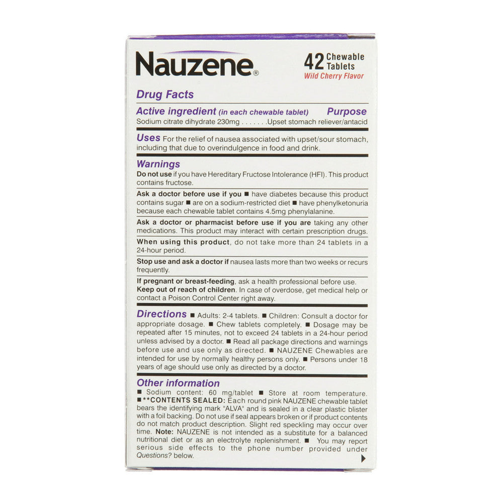 Nauzene For Upset Stomach And Nausea Relief Chewable Tablets, Wild Cherry Flavor, 42 Ea