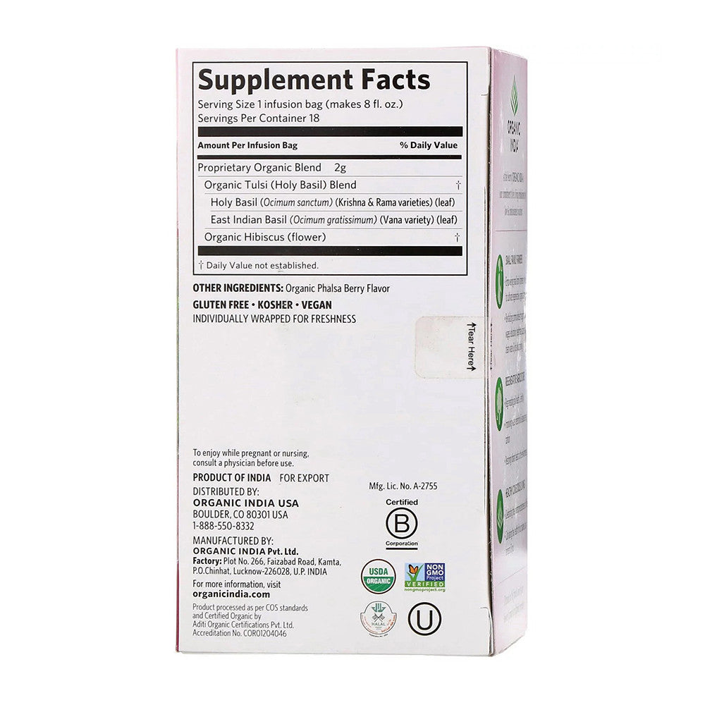 Organic India Tulsi Hibiscus Herbal Tea Bags, 18 Ea