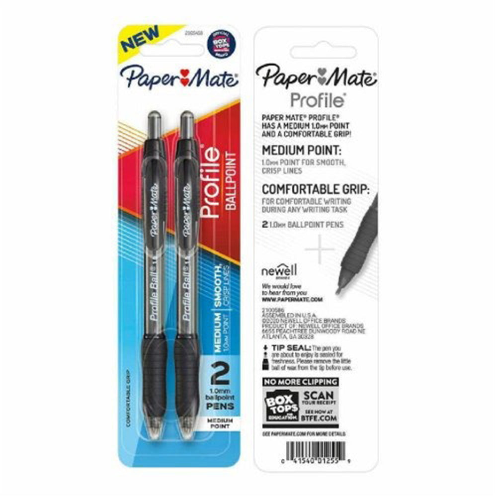 Paper Mate Profile Retractable 1.0mm Ball Point Pen Black 2Ea