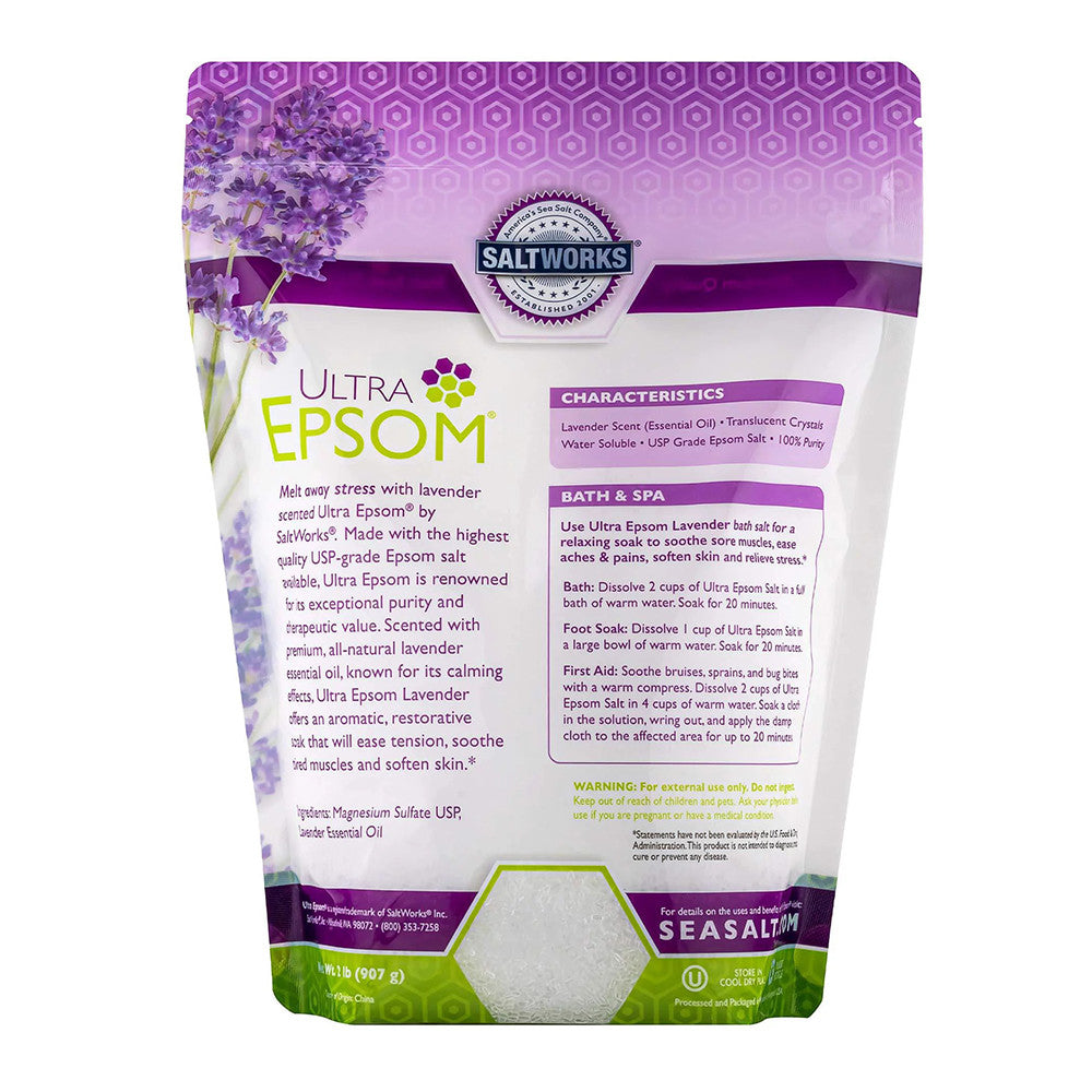 SaltWorks Ultra Epsom Premium Lavender Bath Salt, 2 Lb