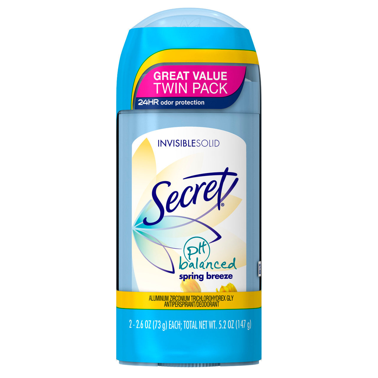 Secret Invisible Solid Antiperspirant and Deodorant, Twin Pack, Spring Breeze, 2.6 Oz