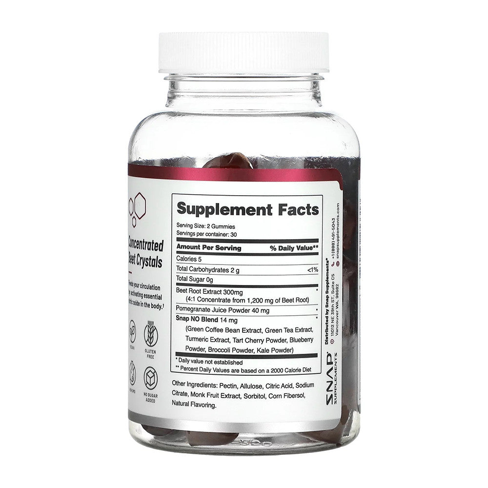 Snap Nitric Oxide Beet Root Gummies, Sugar Free, Support Heart Health, 60 Ea