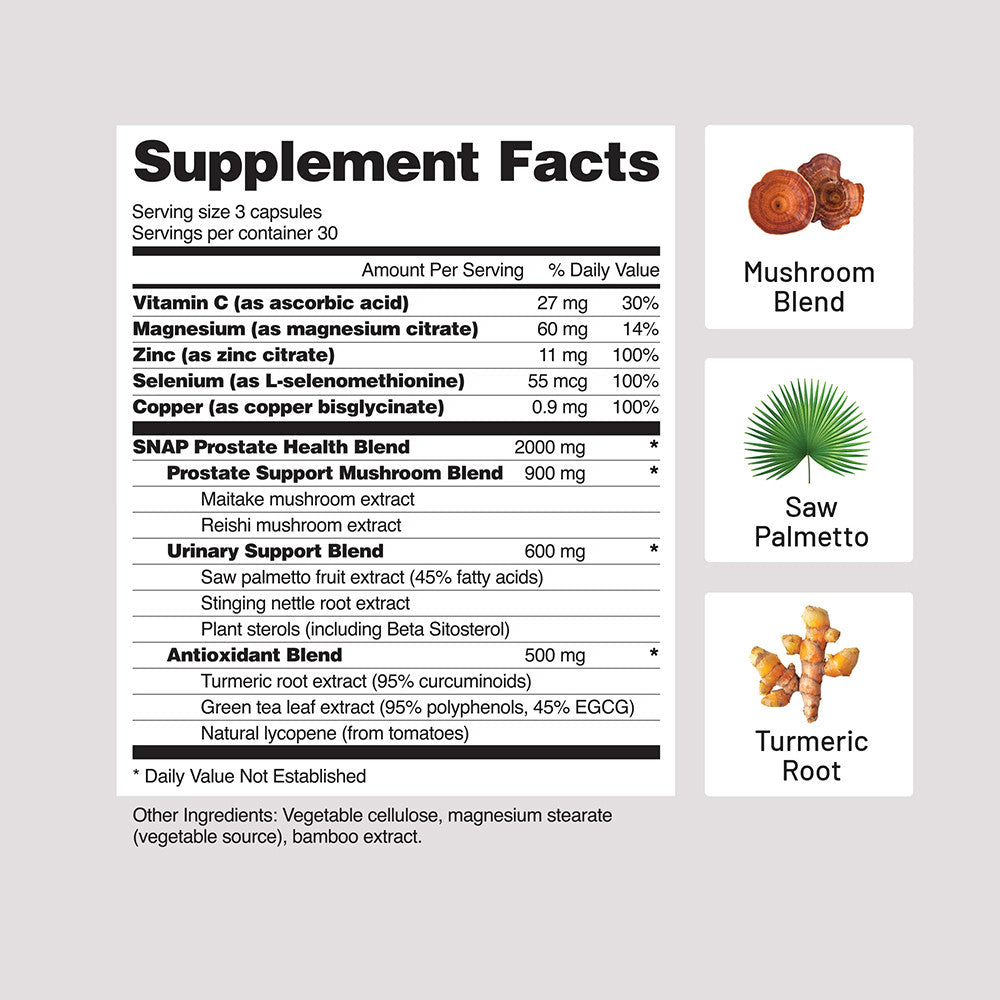 Snap Prostate Health Capsules, Support Prostate, Urinary Tract Health and Immune, 90 Ea