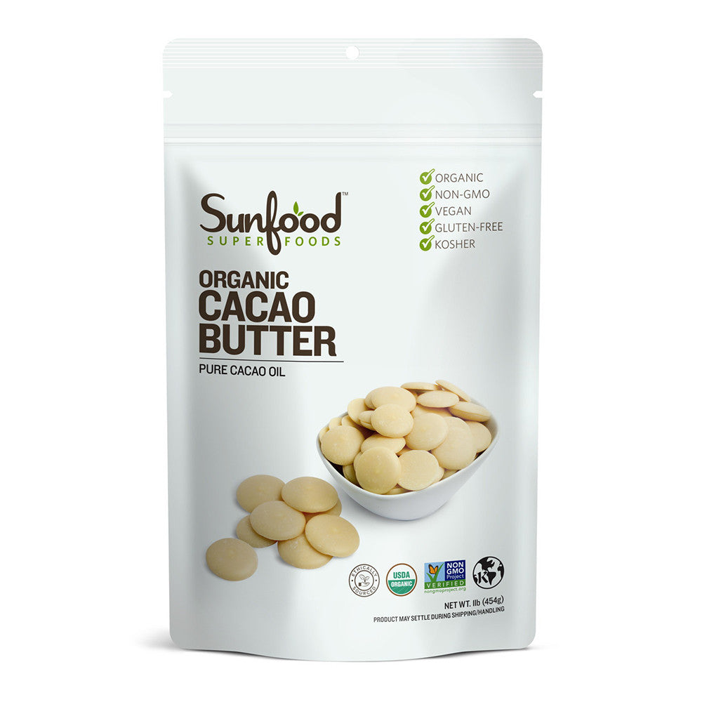 Sunfood Superfoods Organic Cacao Butter with Pure Cacao Oil, 1 Lb