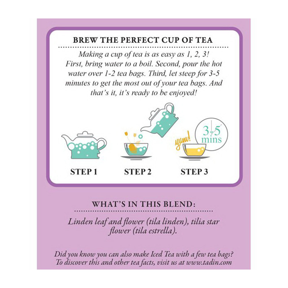 Tadin Tea Tila Linden Flower Herbal Tea, Caffeine Free, 24 Ea