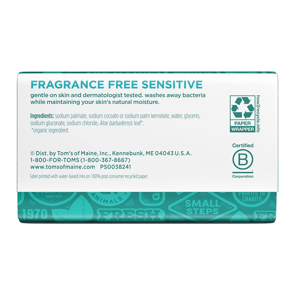 Toms of Maine Natural Beauty Bar Soap For Sensitive Skin With Aloe Vera, Fragrance Free, 5 Oz