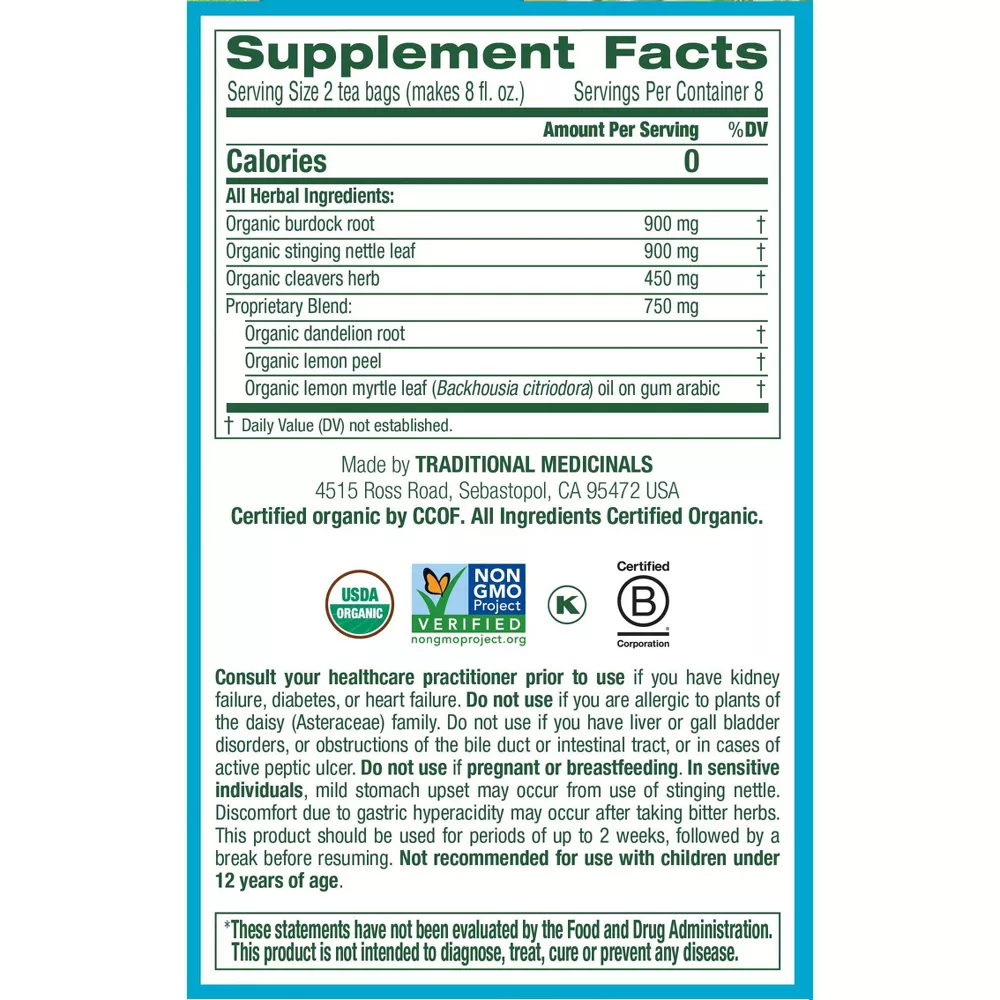 Traditional Medicinals Everyday Detox Herbal Tea Bags, Lemon, 16 Ea