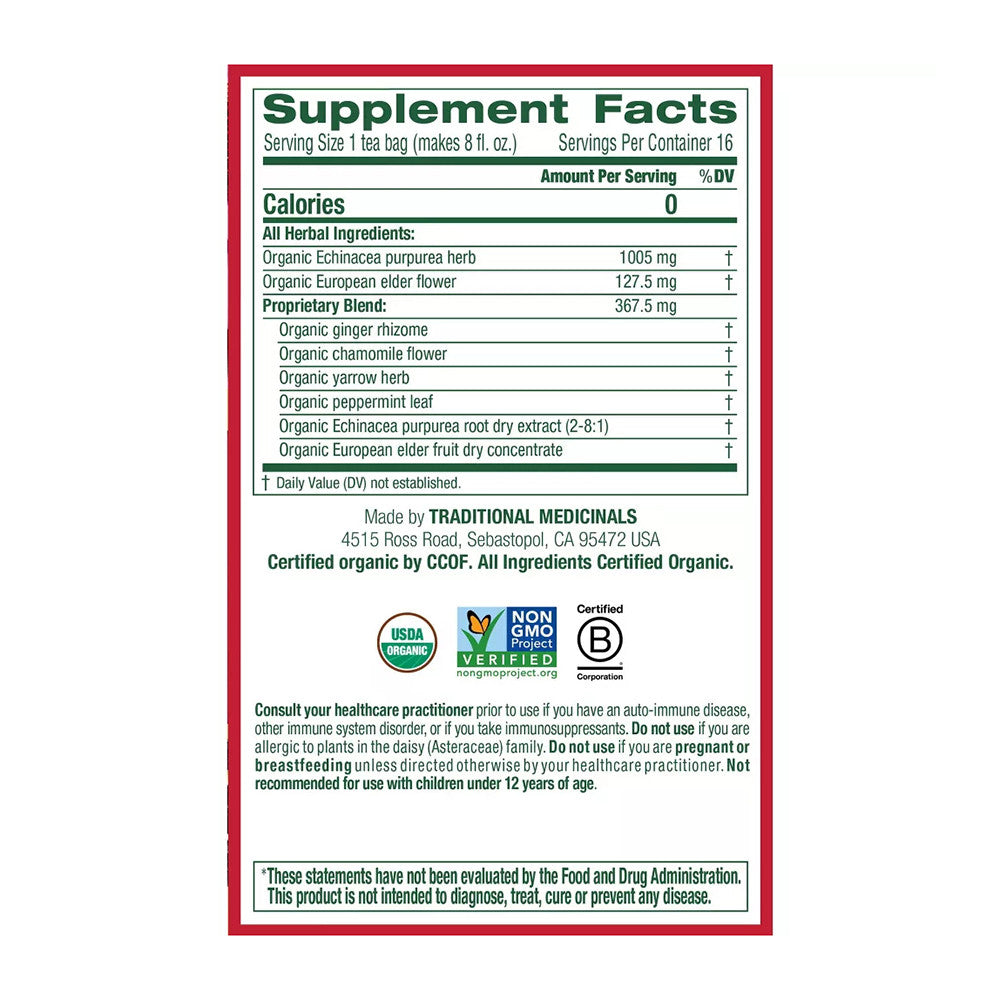 Traditional Medicinals Organic Echinacea Plus Elderberry Tea Bags - 16 Ea