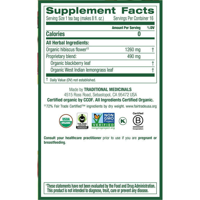 Traditional Medicinals Organic Herbal Tea, Hibiscus, 16 Ct
