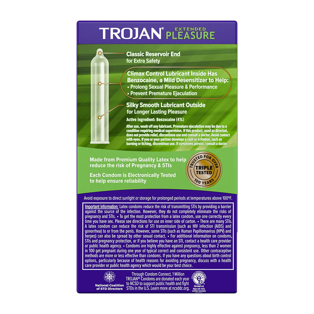 Trojan Extended Pleasure Latex Condoms, Climax Control Lubricant, 12 Ea