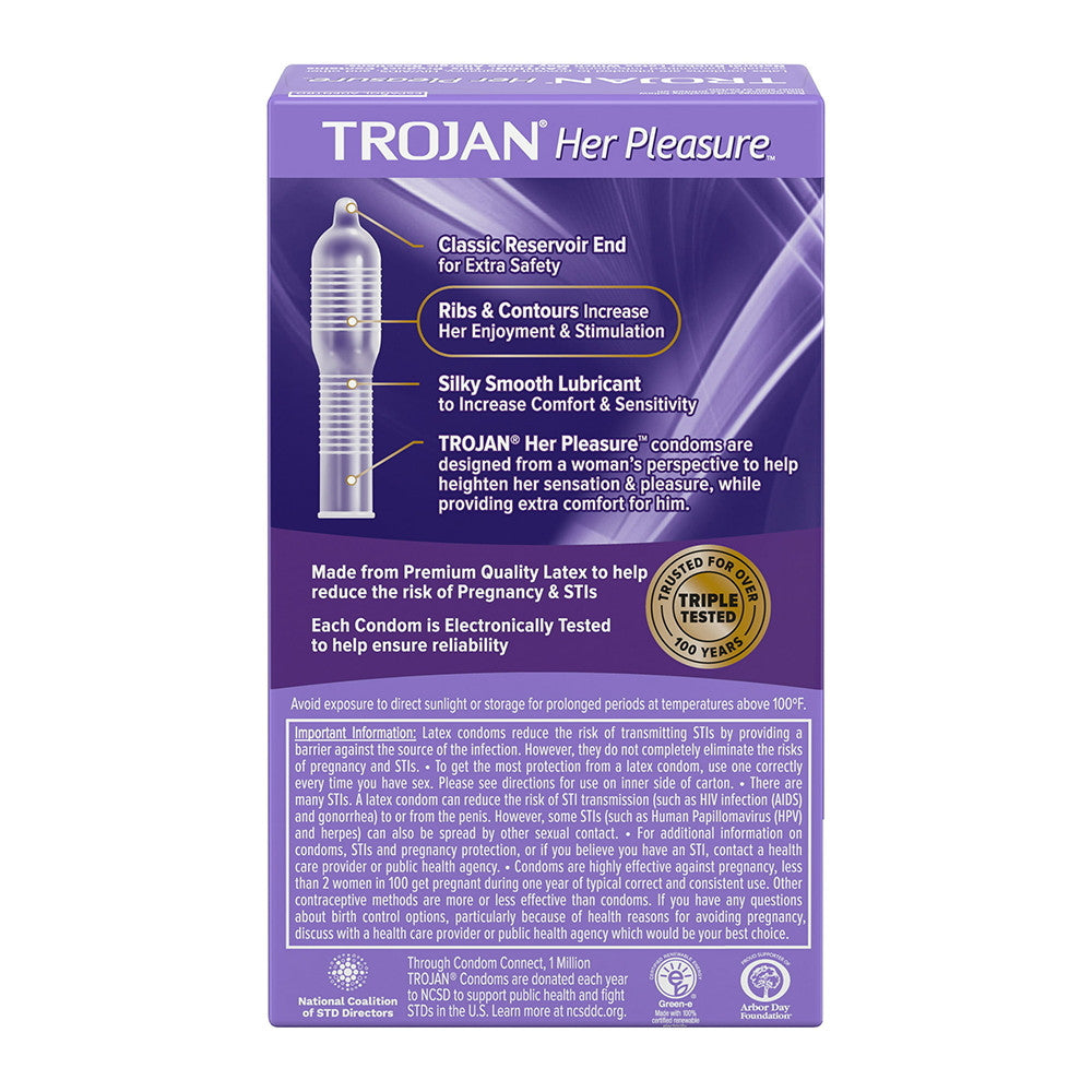 Trojan Her Pleasure Sensations Premium Lubricant Latex Condoms, 12 Ea