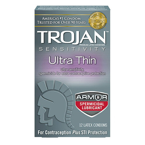 Trojan Sensitivity Ultra Thin Lubricated Latex Condoms, Spermicidal - 12 Ea