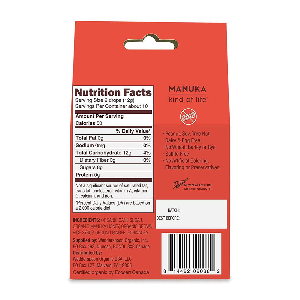 Wedderspoon Organic Manuka Honey Drops, Ginger with Echinacea, 4 Oz