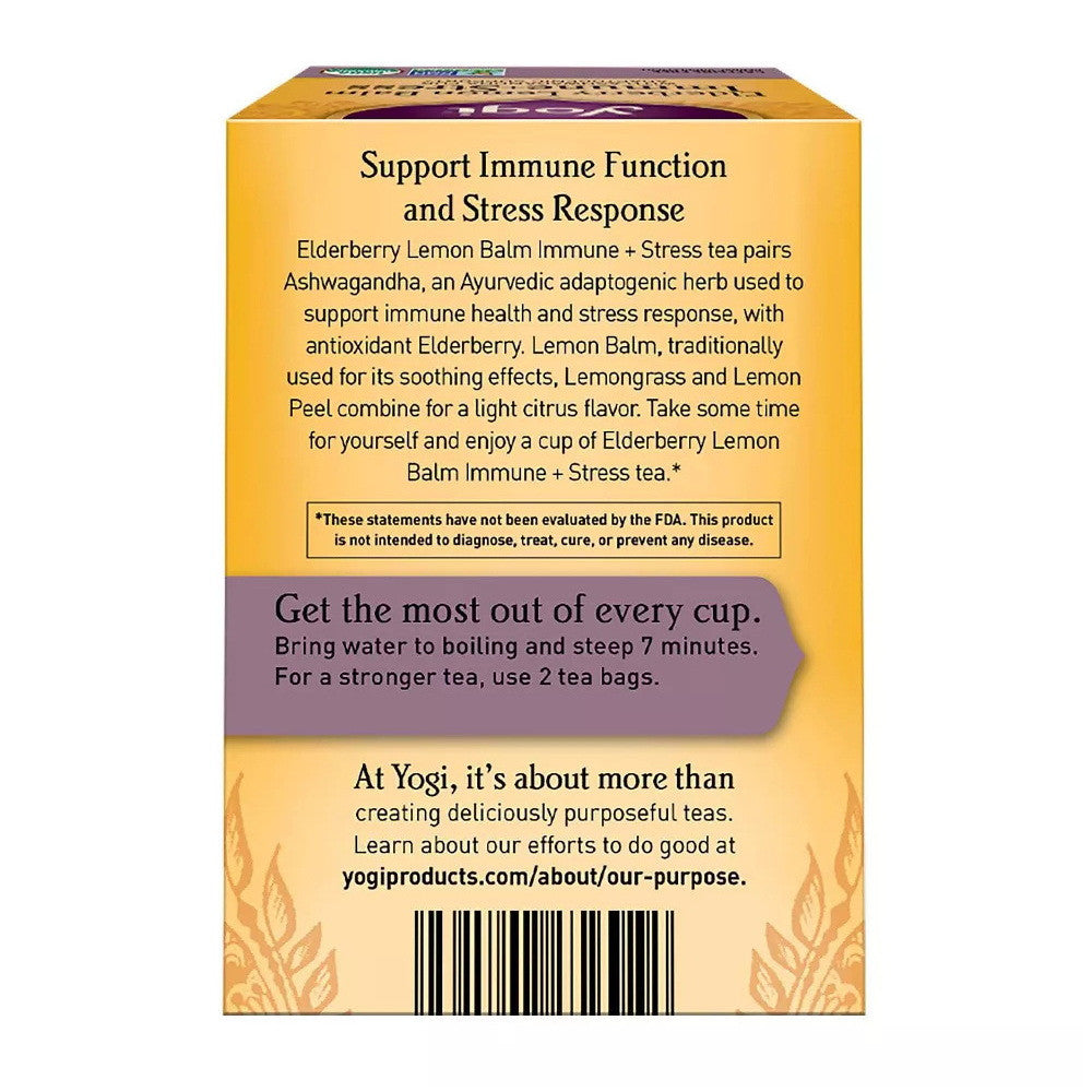 Yogi Elderberry Lemon Balm Immune Plus Stress Tea Bags, Caffeine Free, 16 Ea